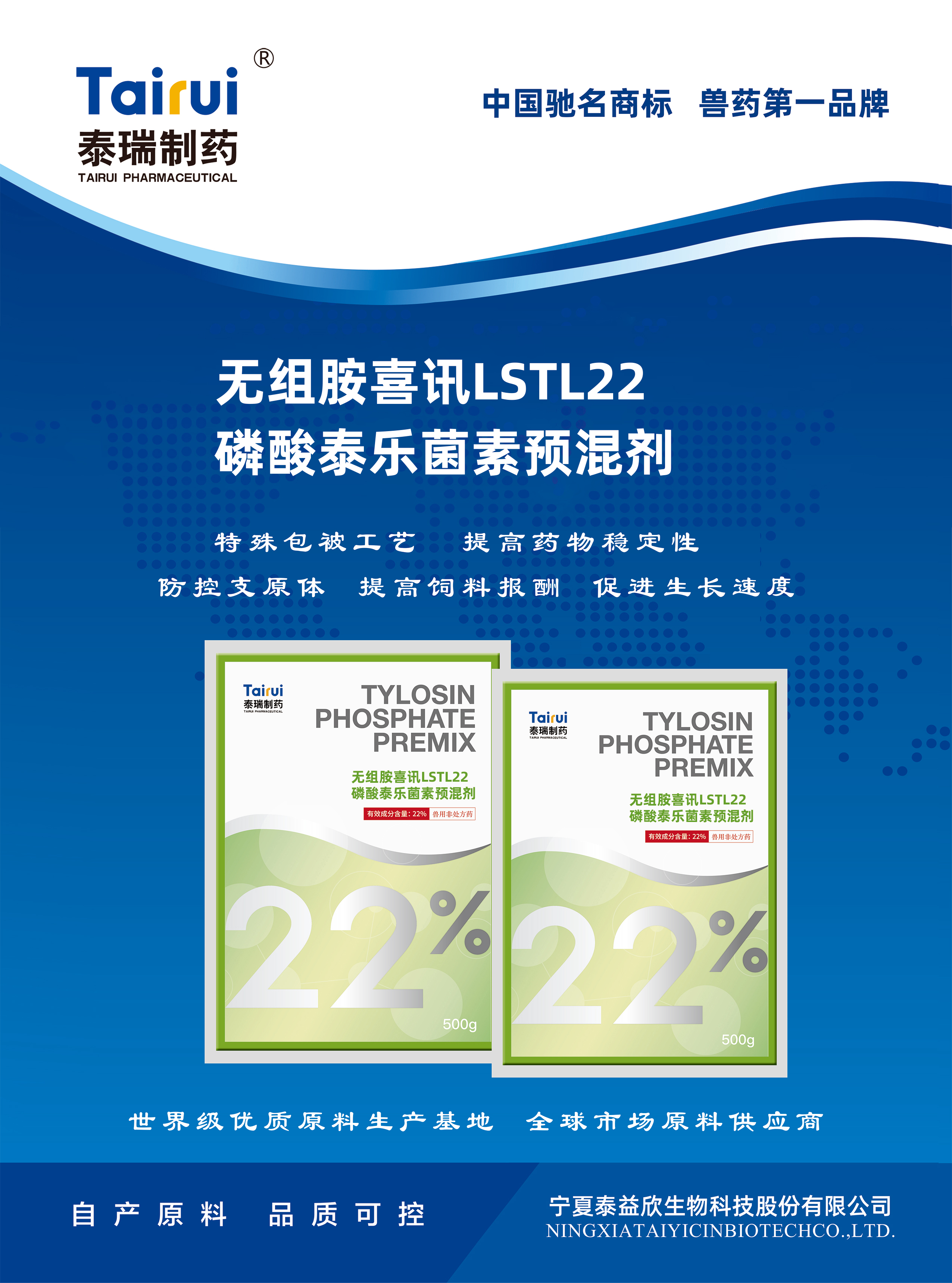 穩(wěn)定、高效:磷酸泰樂菌素分子結(jié)構(gòu)穩(wěn)定,生物學(xué)活性和可利用度高,是飼料工業(yè)中抗生素類添加劑的新星。
