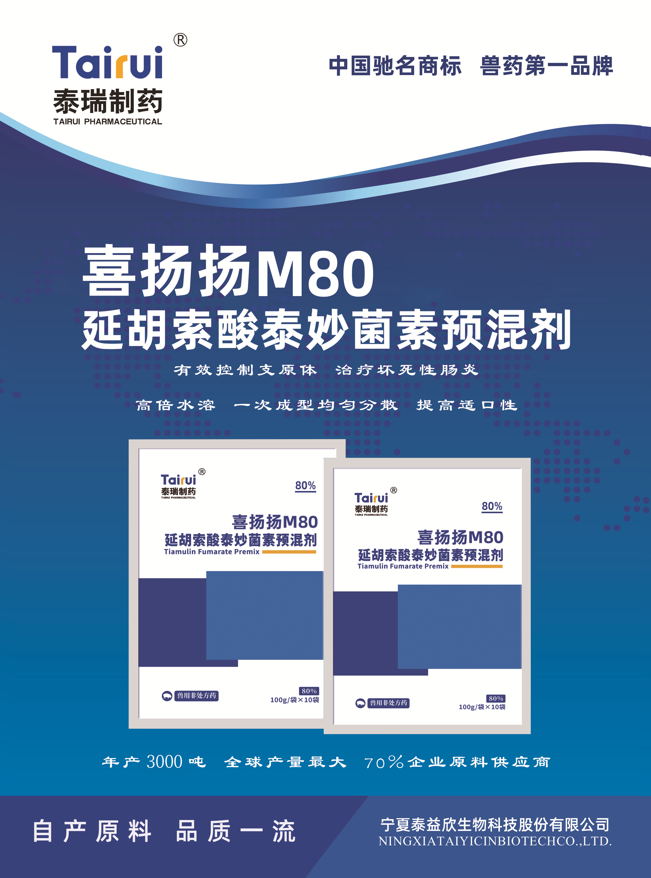 包被技術(shù):先進的包被工藝,掩蓋藥物刺激性氣味,不影動物采食量。藥效顯著:有效成分純度高,雜質(zhì)少,豬口服泰妙菌素2小時即可快速到達血藥高峰,維持時間長達24小時以上,更好地控制疾病,促進患病豬恢復生長性能。